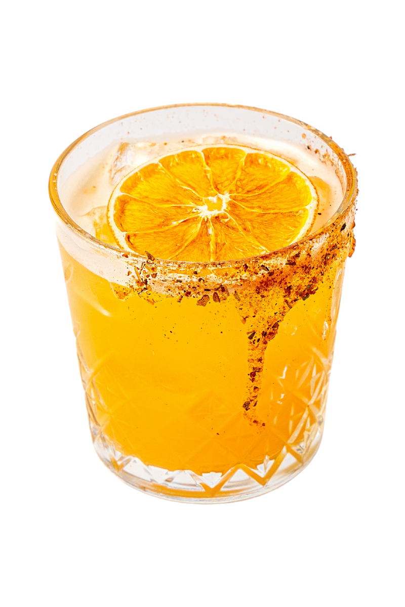 Acılı tekila, portakal likörü, ananas suyu ve mango püresi