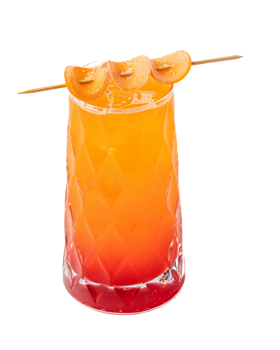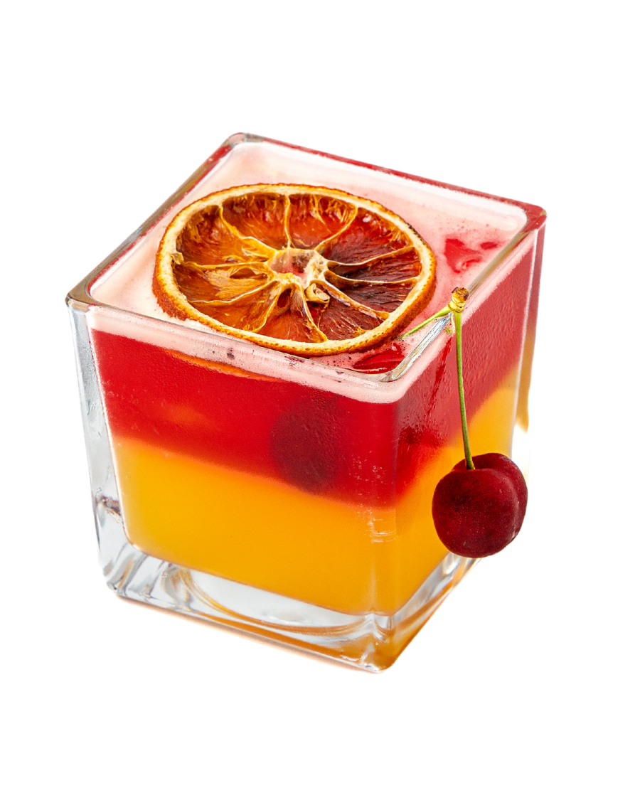 Votka, tekila, şeftali likörü, nar şurubu ve portakal suyu