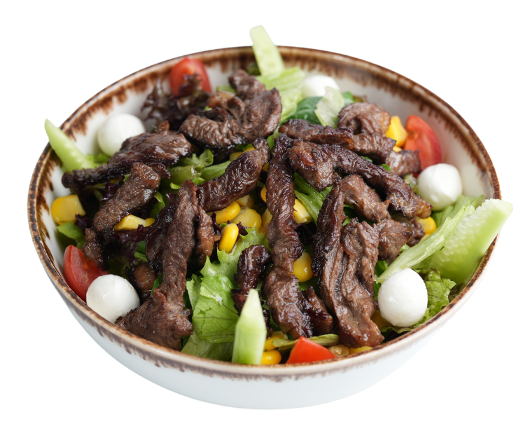 Akdeniz yeşillikler, Dana eti, soğan, mısır, çeri domates ve salatalık
